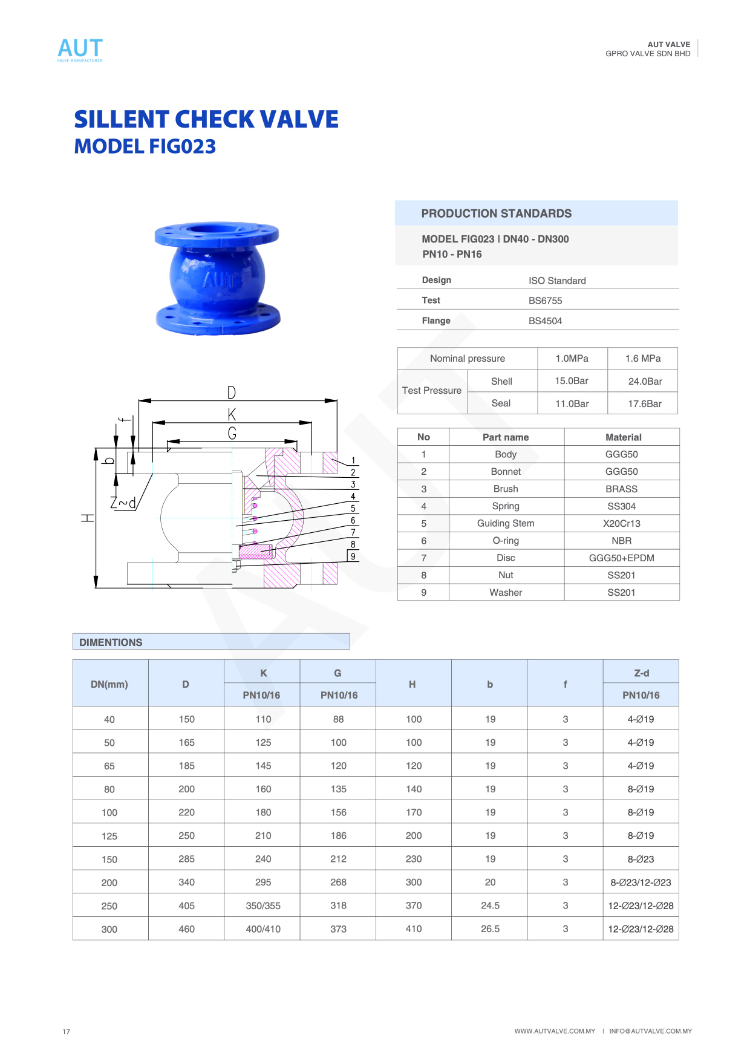 Van 1 chiều lò xo thương hiệu AUT là dòng van chặn nối bích, có thiết kế đặc trưng chống dòng chảy ngược và đồng thời có tác dụng điều chỉnh hướng dòng nước. Cấu tạo của chúng khá đơn giản: