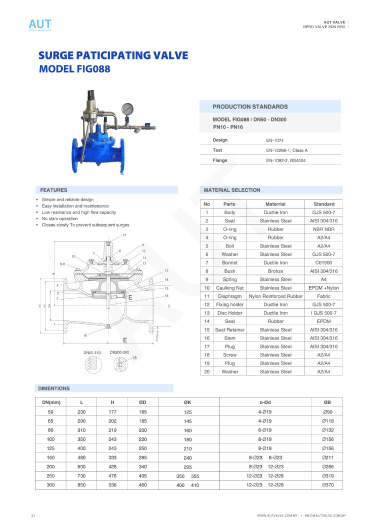 - Van chống va AUT hay còn được gọi là van búa nước, van chống va đập… Đây là loại van điều khiển bằng thủy lực, hoạt động bởi áp lực tác động của đường ống. Việc sử dụng van trong các hệ thống đường ống giúp hạn chế tối ưu nhất hiện tượng va đập, búa nước sảy ra trong quá trình hoạt động. Cách lắp đặt van chống va AUT