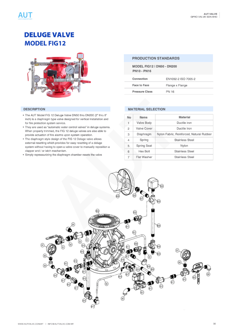 - Vật liệu chế tạo: thân van bằng gang dẻo, phụ kiện và chuông nước bằng inox, lá van bằng cao su EPDM.